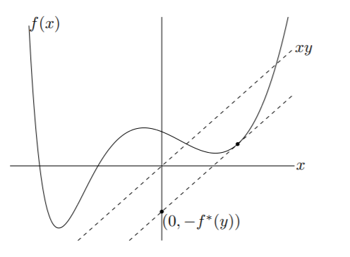 另外,也可以通过 $\mathrm{epi}\;g$ 来证明凸性: $$ \text { epi } g=\{(x, t) \mid(x, y, t) \in \text { epi } f \text { for some } y \in C\}\\ $$ 是某个凸集的投影。